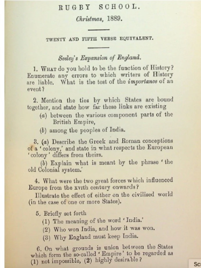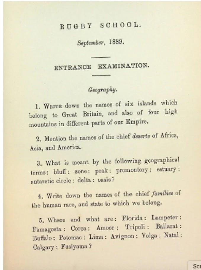 Here are some examples of examination papers from the Rugby School archive, dated 1889.